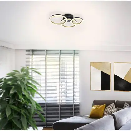 Eglo Plafondlamp Calliera Staal Zwart, Messing 20W 2500lm - 830 Warm Wit | Dimbaar