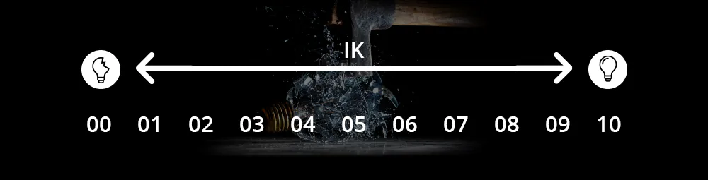 De IK waarde staat voor de slagvastheid en bescherming tegen vandalisme. Dit wordt uitgedrukt in combinatie met 2 cijfers (IK00 - IK10). Producten met IK00 zijn niet beschermd tegen weerstand, terwijl producten met IK10 weerstand bieden tegen schokken van 20 Joule en tevens vandaalbestendig zijn.