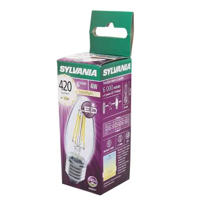 Sylvania ToLEDo E27 Kaars Filament Helder 4W 420lm - 827 Zeer Warm Wit | Vervangt 40W